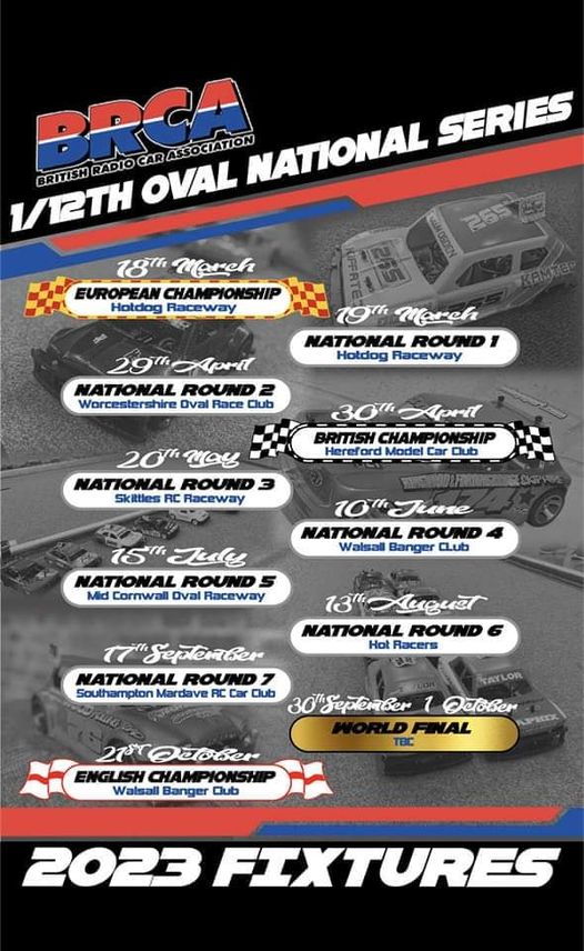 If you are interested in 1/12th Hot rod, Mini stocks, 1300 and 2lr saloon oval racing then please take a look at our 2023 national fixture list.
