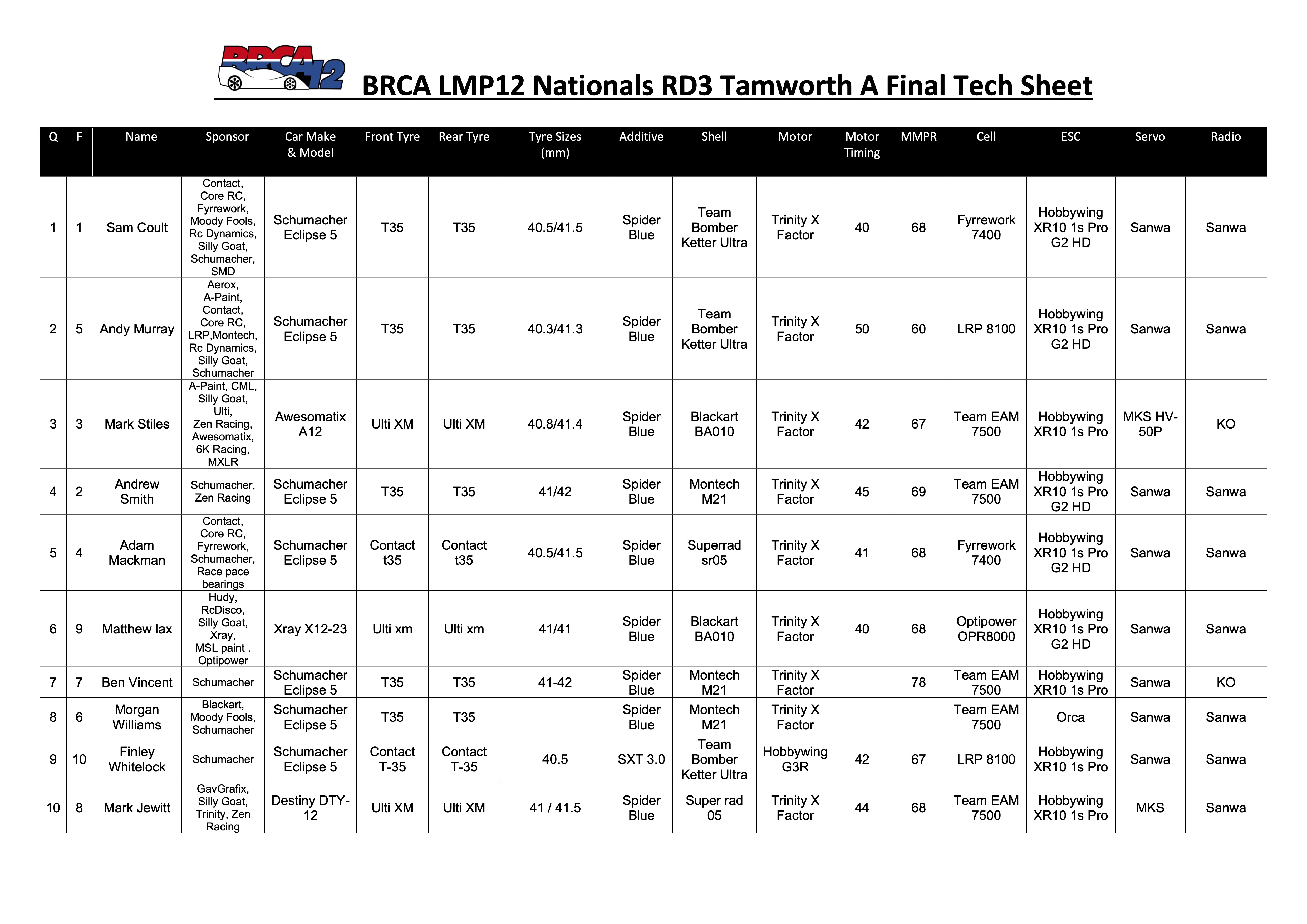 Rounds 3 and 4 of the BRCA LMP12 Nationals were held last weekend in Tamworth. This weekend followed on from the successful start in Eastbourne last month and had a capacity entry of around 80 drivers in attendance. Stock and modified classes were again offered with the largest entry of 78 drivers in the stock class providing an incredibly competitive race weekend.