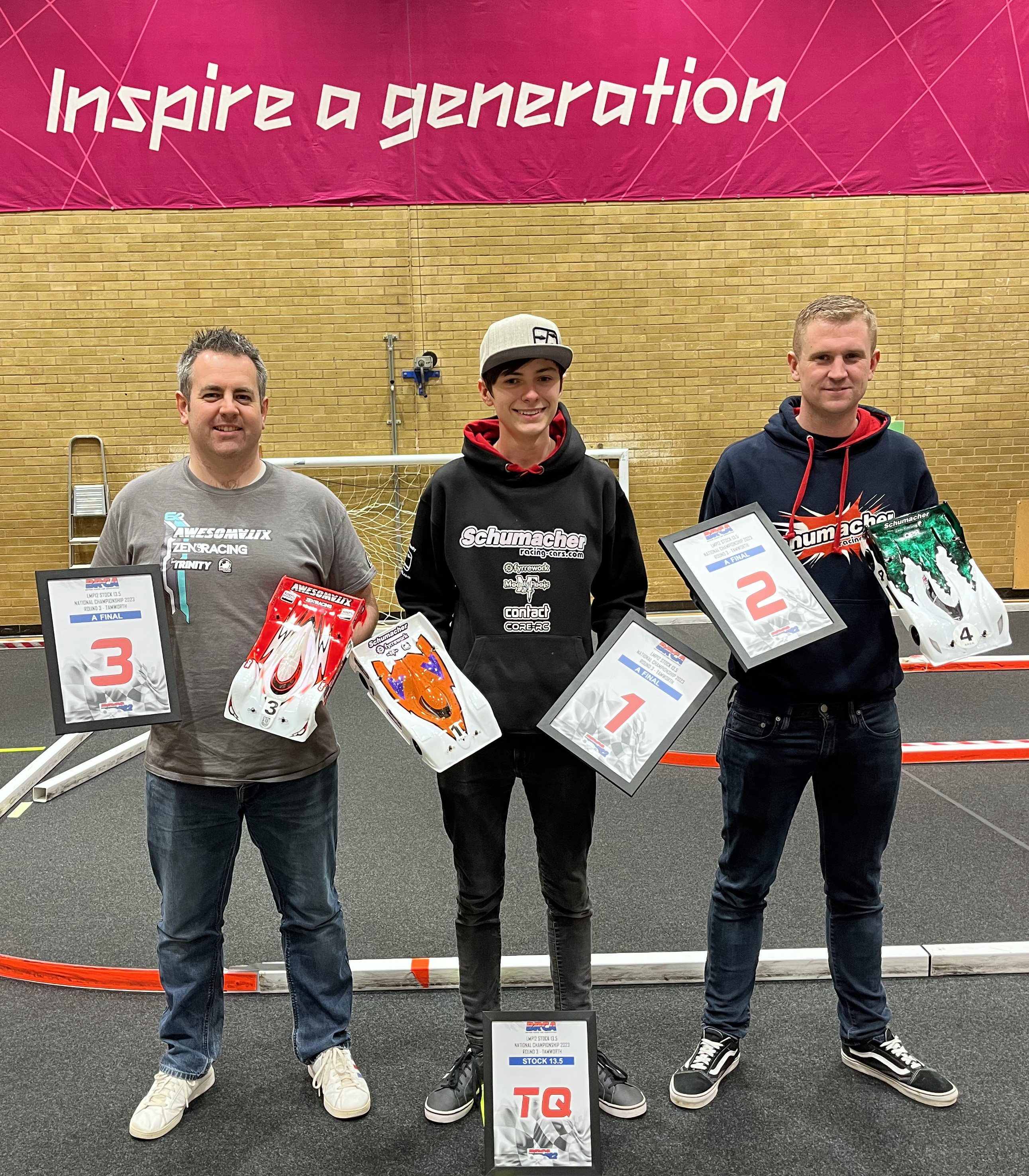 In the stock A final Sam would lead away from the front but would be pursued very closely by Andy Murray initially before Andy clipped a corner and dropped back into the pursuing pack. The following cars of Andy Smith, Mark Stiles, Adam Mackman, Ben Vincent and Morgan Williams were circulating in a train throughout the whole race. Sam took advantage of the gap and drove a smooth clean race to maintain his lead. Andy Murray would make his way back to second and in the dying laps put Sam under huge pressure before catching a corner and dropping back down the order. Sam would cross the line before the tone to be the only man to finish on a 39 lap and secure his first national win. Congratulations Sam. Mark Stiles would come home second ahead of Andy Smith who completed the podium in third.