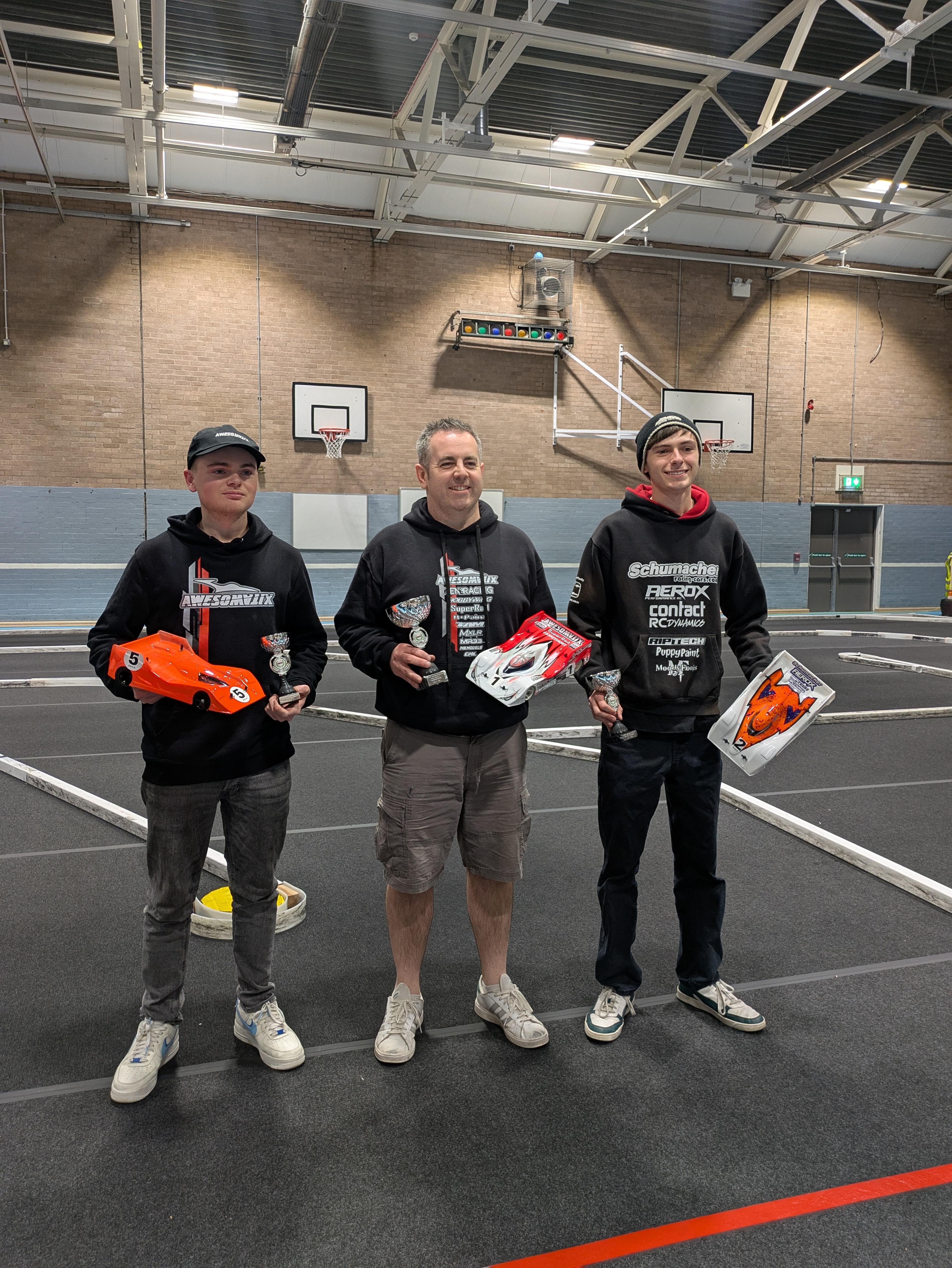 Mark Stiles set the pace early doors with his Awemsomatix A12X , he converted his early pace into an overall TQ . Mark took the win in every round of qualifying. Sam Coult would take second on the grid with his Schumacher Eclipse 6 . Morgan Williams would keep up his good form with his eXcelerate , he would line up in 3rd . Places 3-6 would be separated by under 1.5 seconds. 4th would be Schumacher's Louis Parker , Closely followed by the Awesomatix duo of Micheal Bolt and Chase Mackman. Aaron Morley would line up 7th on the grid with James Hart in 8th . Adam Mackman would line up 9th , And making his first national A-Main at the age of just 13 was Andrea Torregiani .