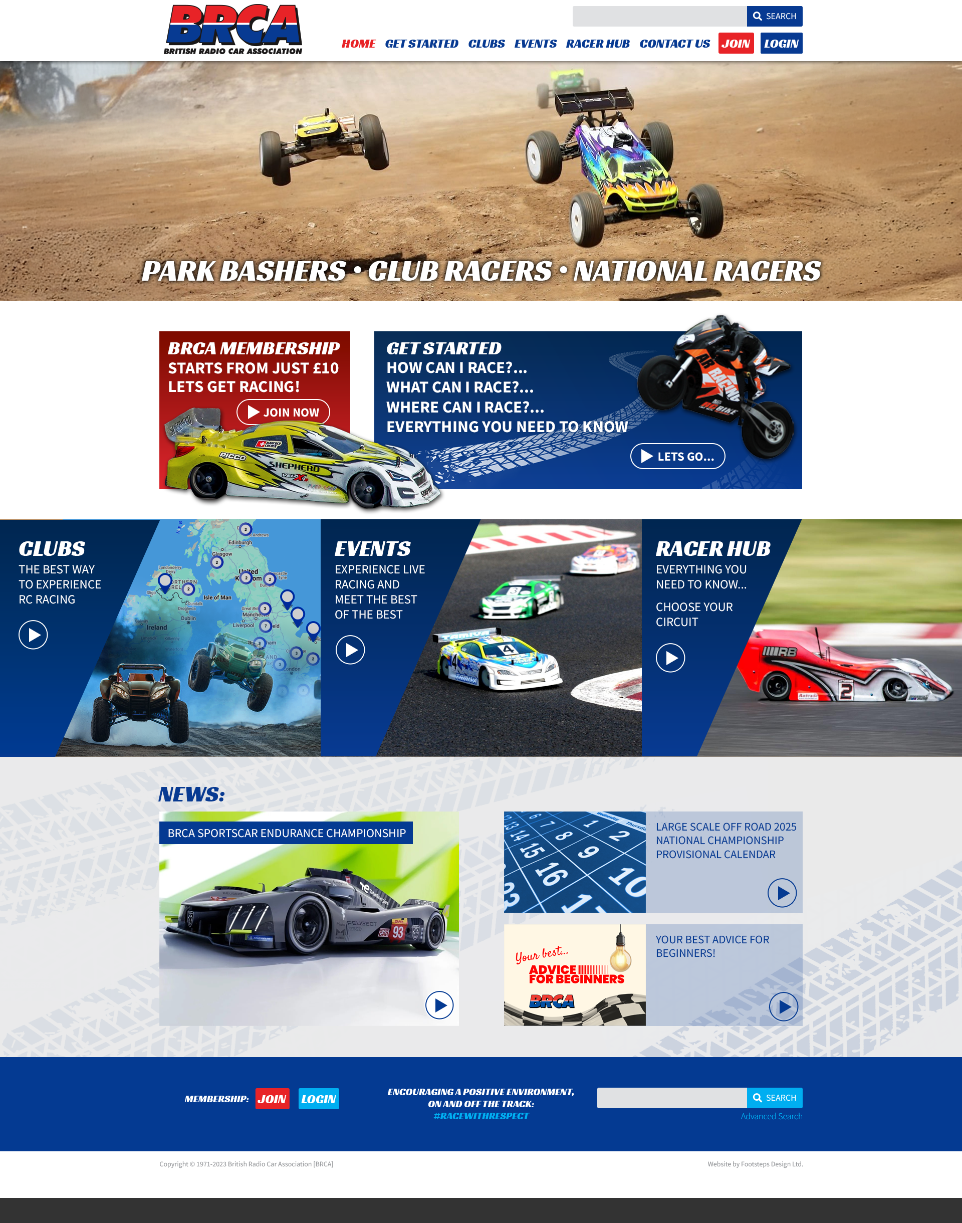 January 2015 Darren Newton (BRCA Sectretary) was tasked with creating a small Website Working party to create the new site, the Joomla Platform was chosen as Darren had more experience in this area, a concept idea (Image Right) was acepted by the Floor at an Exec Committee Meeting and work Started.
