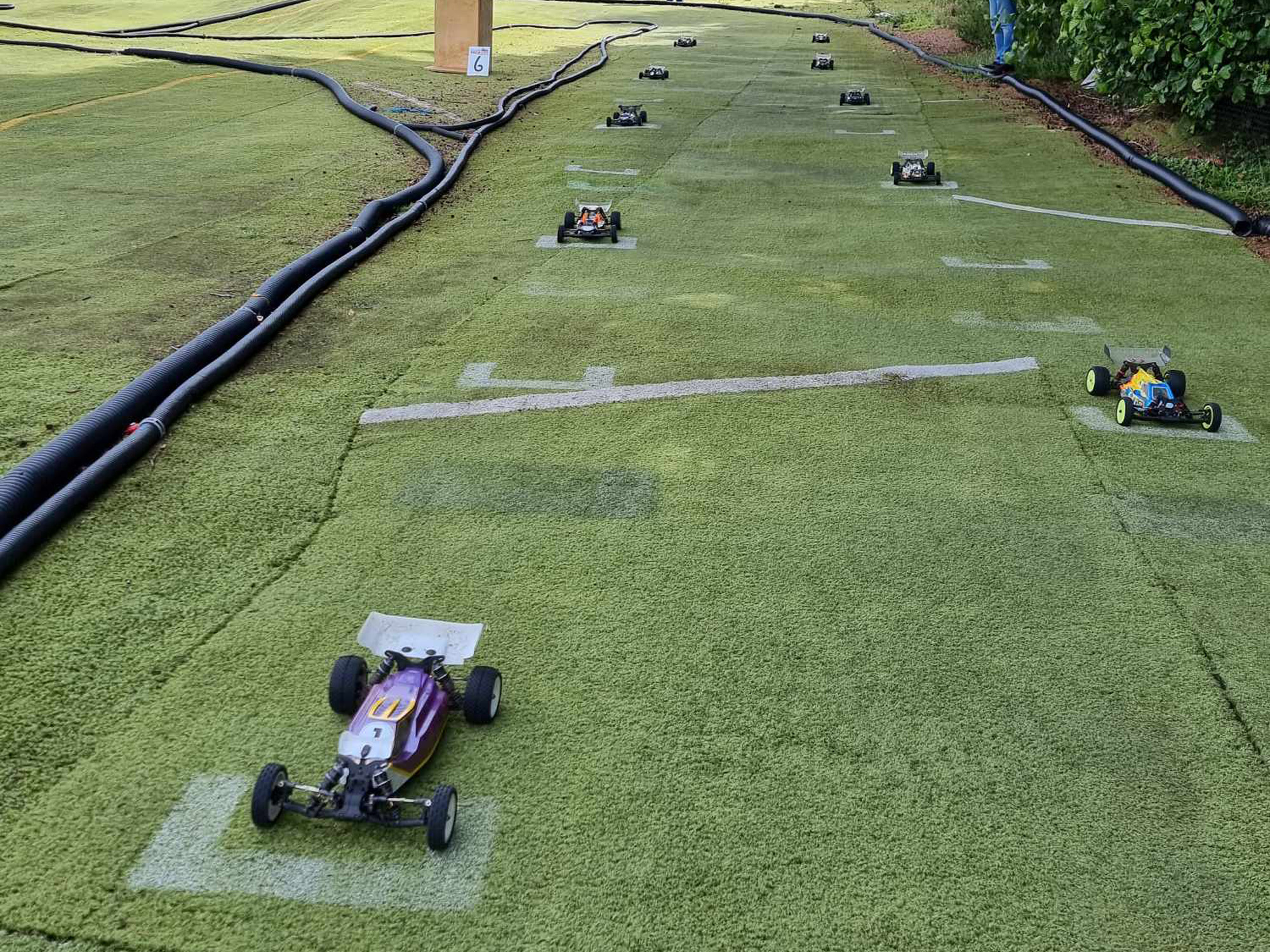 The track was laid out with a mix of fast and slow bends making use of the elevations, dips and hollows of the Glasgow RC Raceways super bumpy off road astroturf surface.