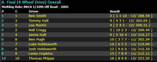 For 2023 there is a new award from the BRCA. The Paul Worsley trophy will be presented to the driver with the highest combined 2wd and 4wd score. This year it is Tommy Hall.