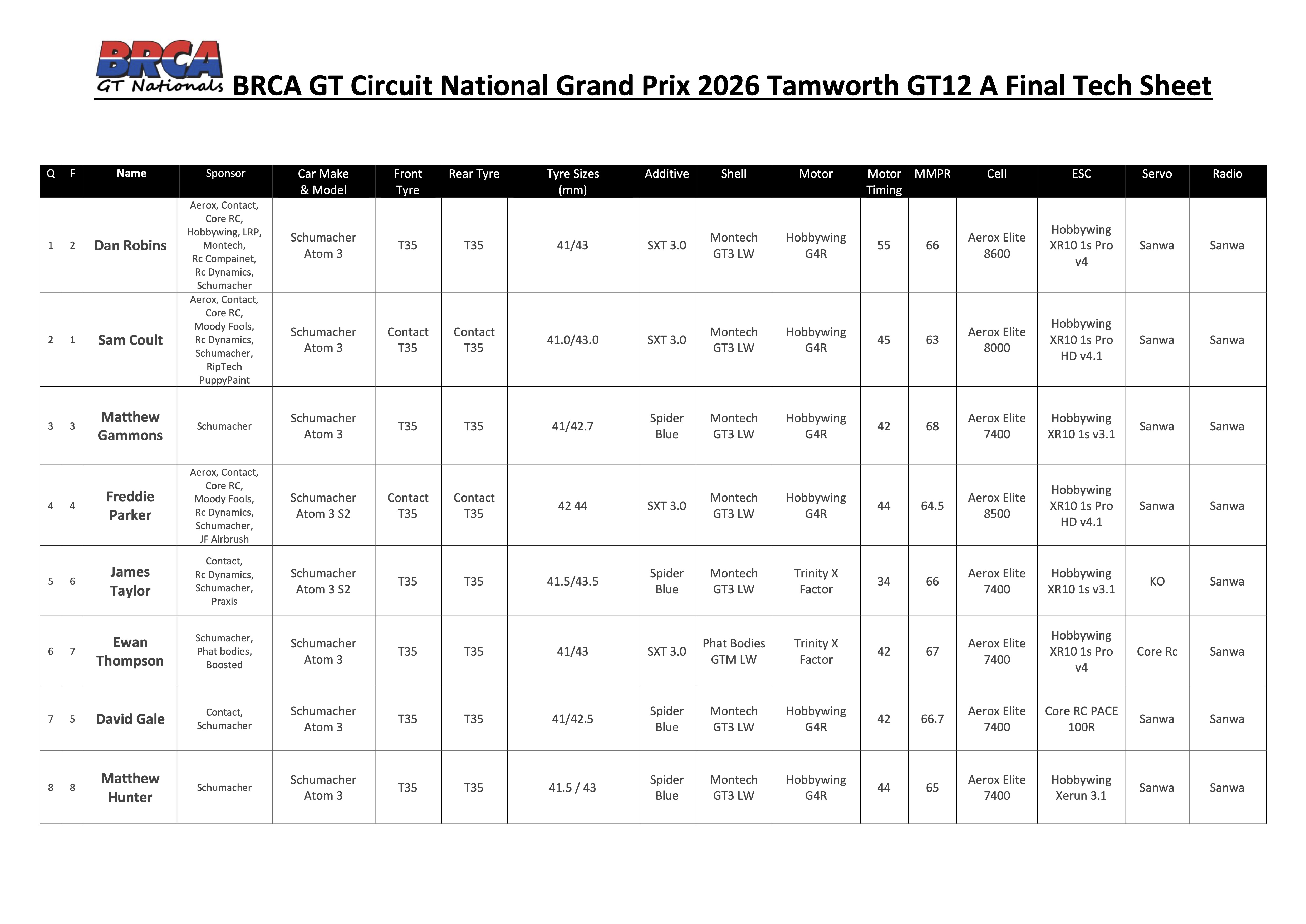 The BRCA GT12 National Grand Prix returned to the Tamworth Radio Racing Auto Club this past weekend, bringing together the UK’s finest and most enthusiastic GT12 racers for two days of intense competition. While the racing was fierce across all finals, the weekend belonged to Sam Coult, who celebrated more than just another year on the calendar by securing a dominant overall victory.