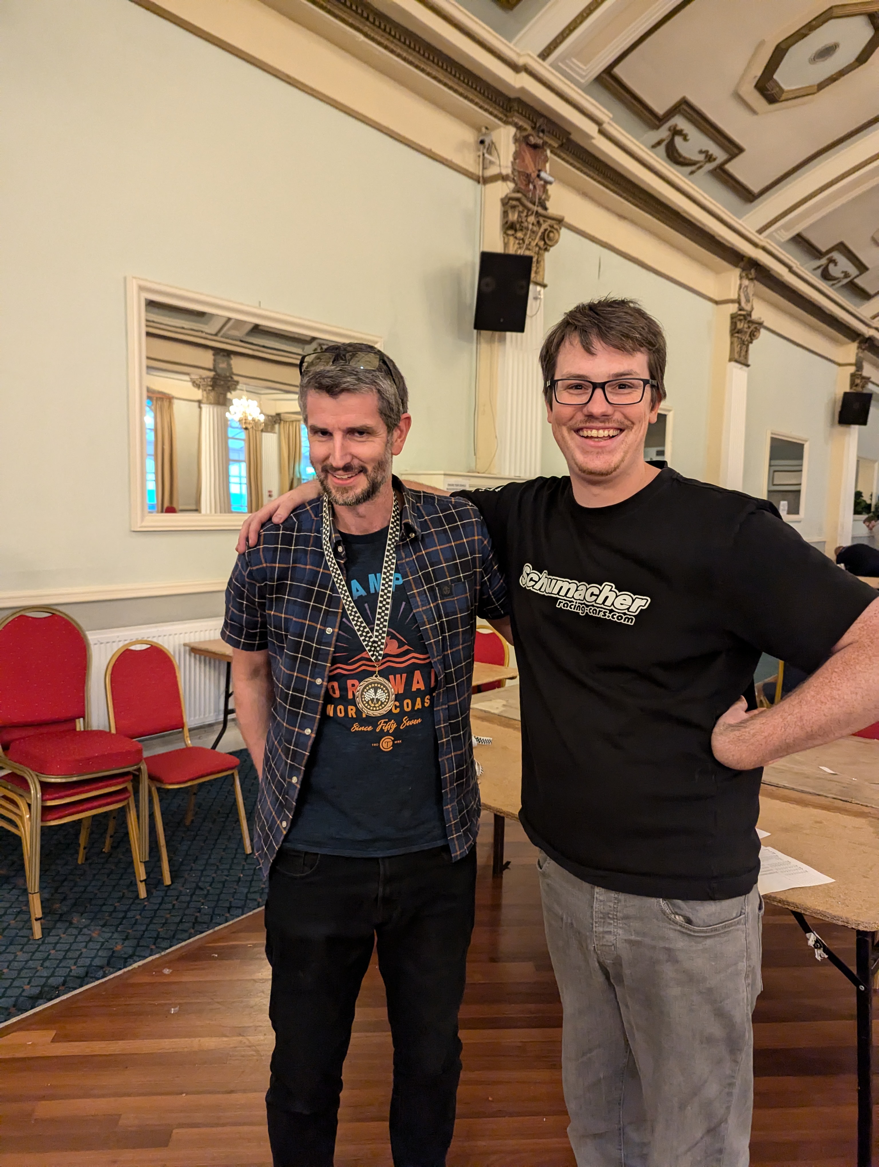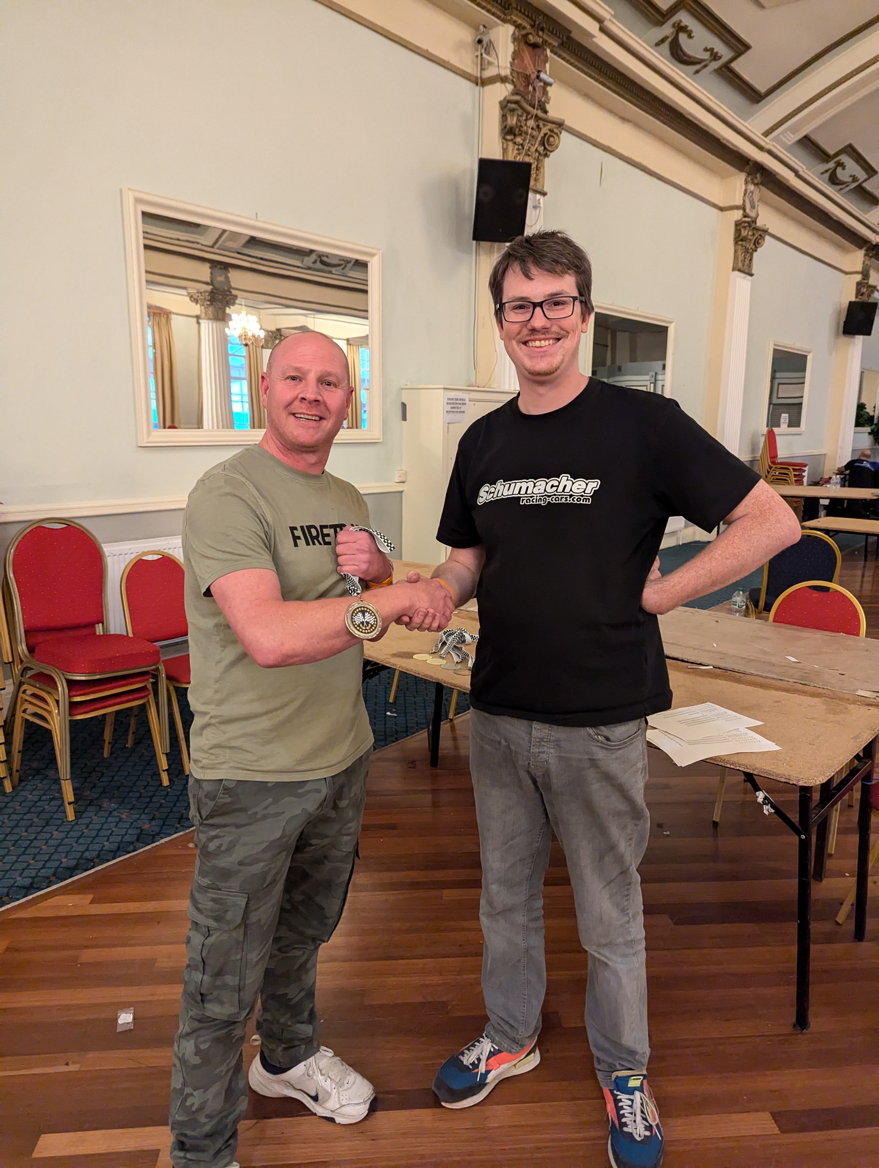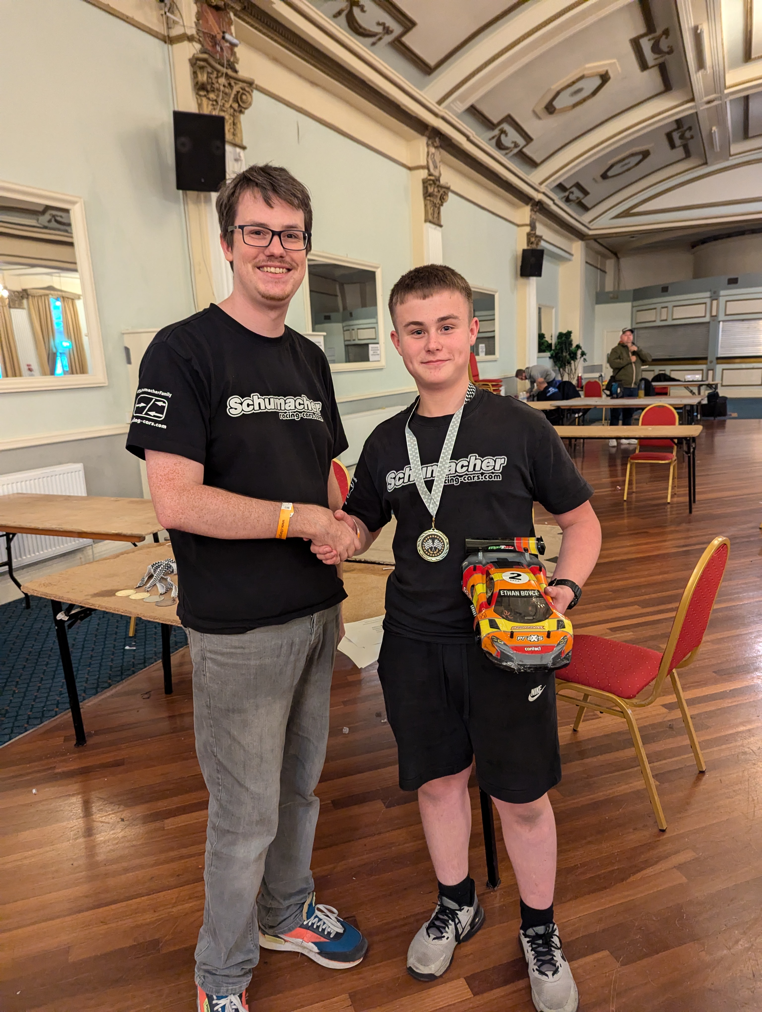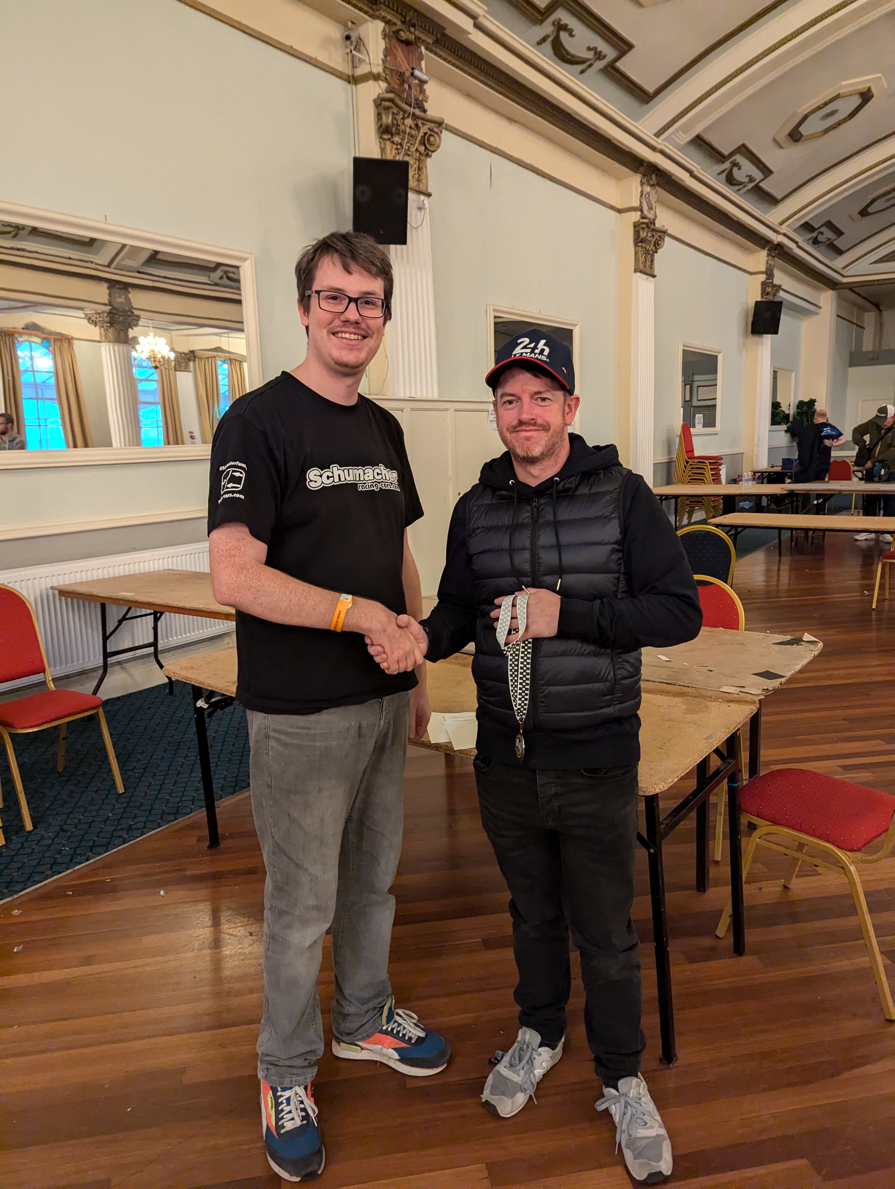 Our last race of the day, as ever, was the A final. A heavy shunt while forming on the grid saw urgent repairs to allow Ewan to start the race. Matt lead from start to finish, and despite his damaged car, Ewan managed to keep Sam behind him, to see the top 3 finishers match the qualifying line up. Behind them there was some close competition, with fifth and sixth being separated by 0.7s and plenty of swapped positions from qualifying.