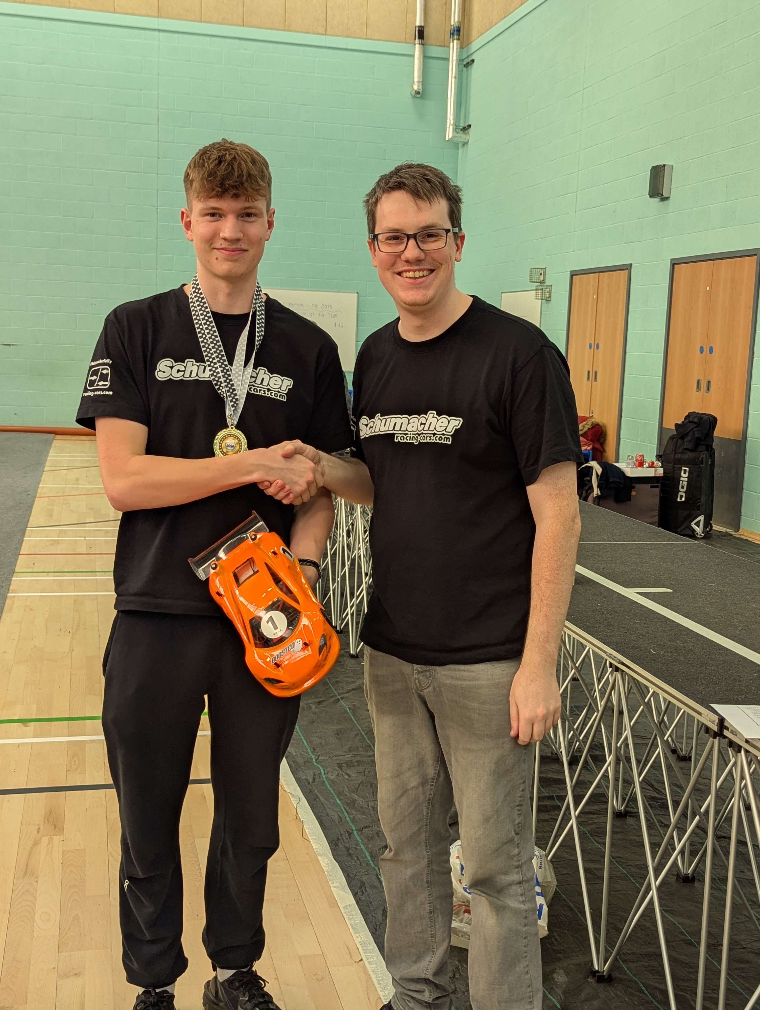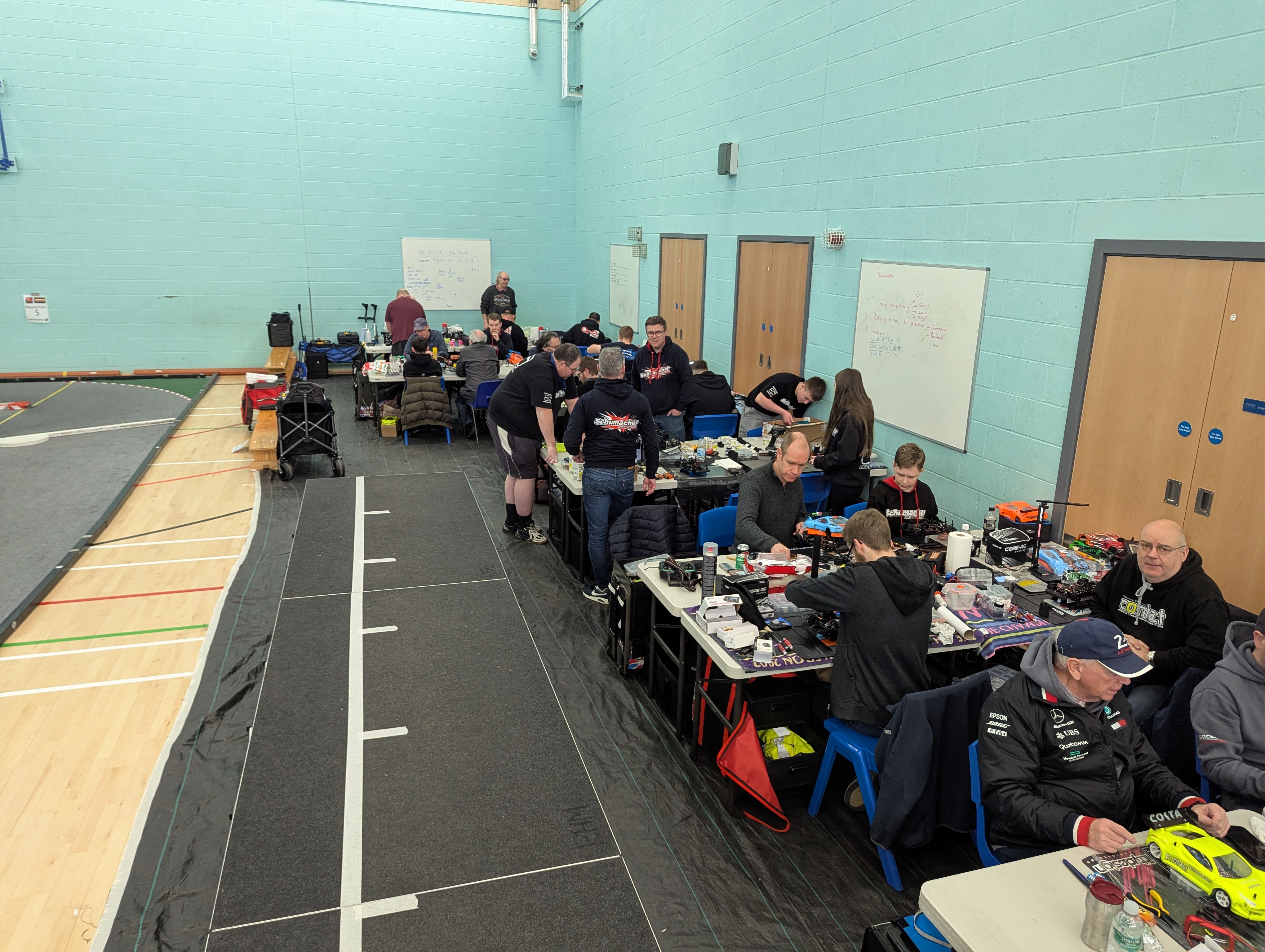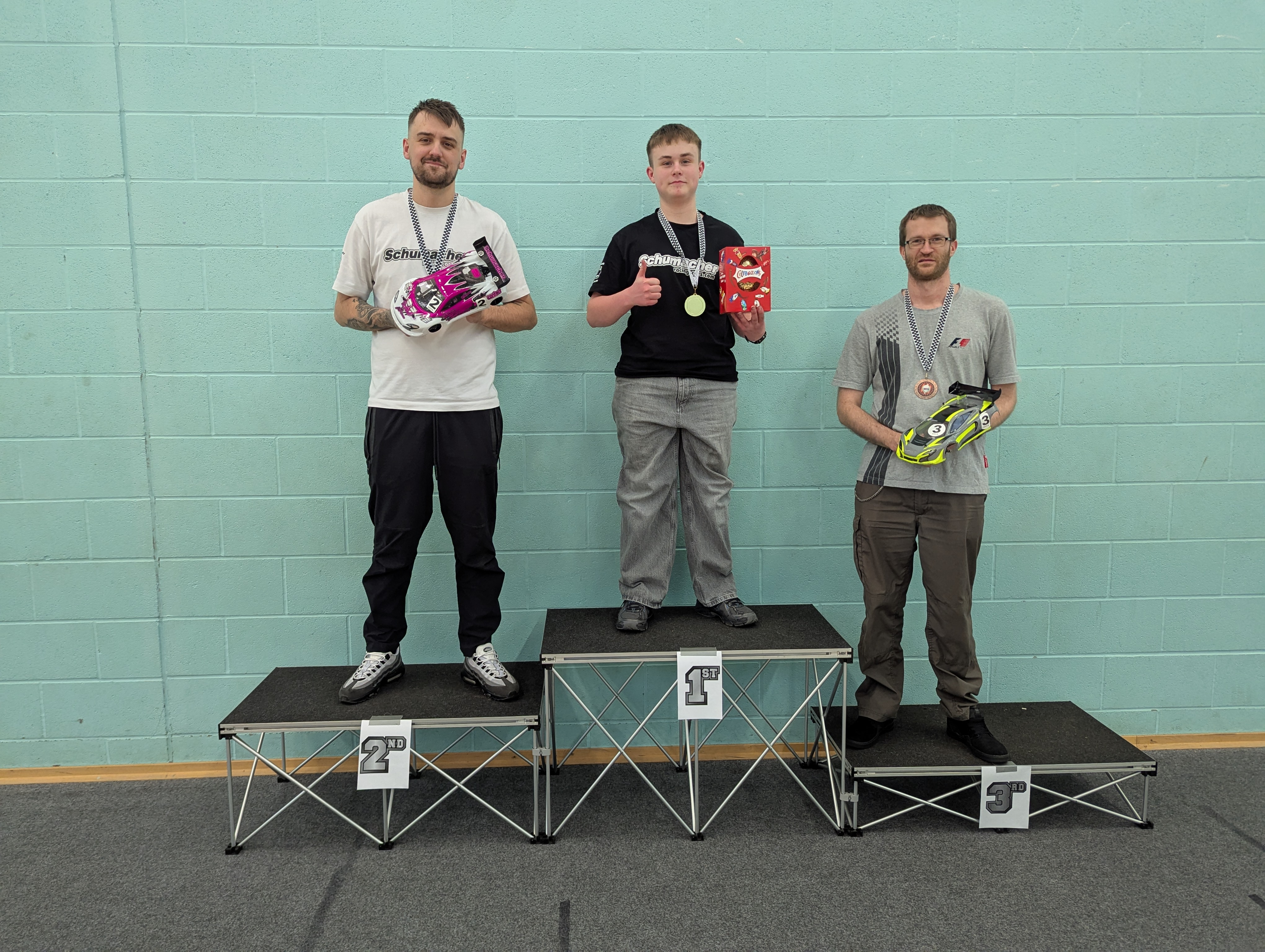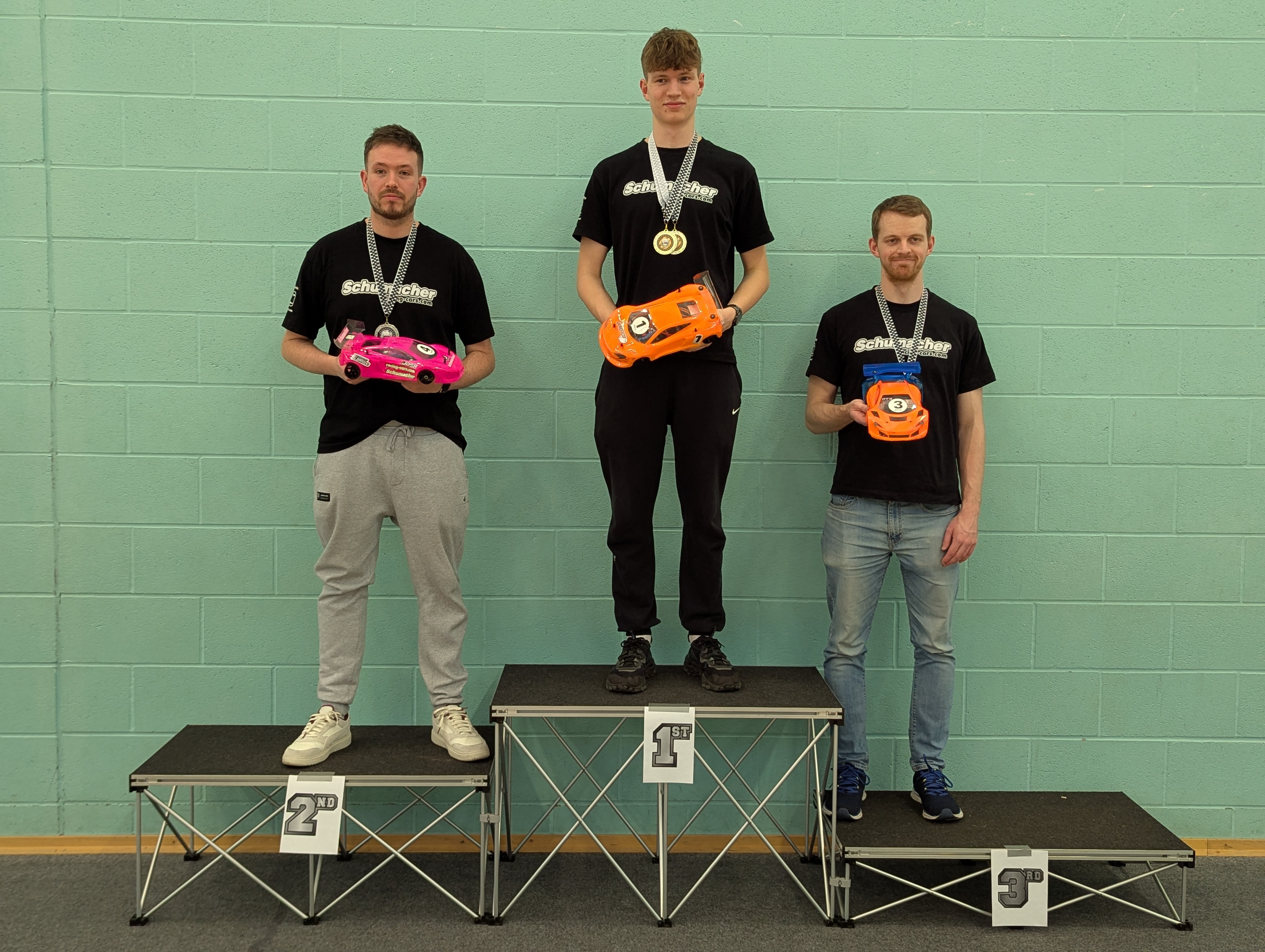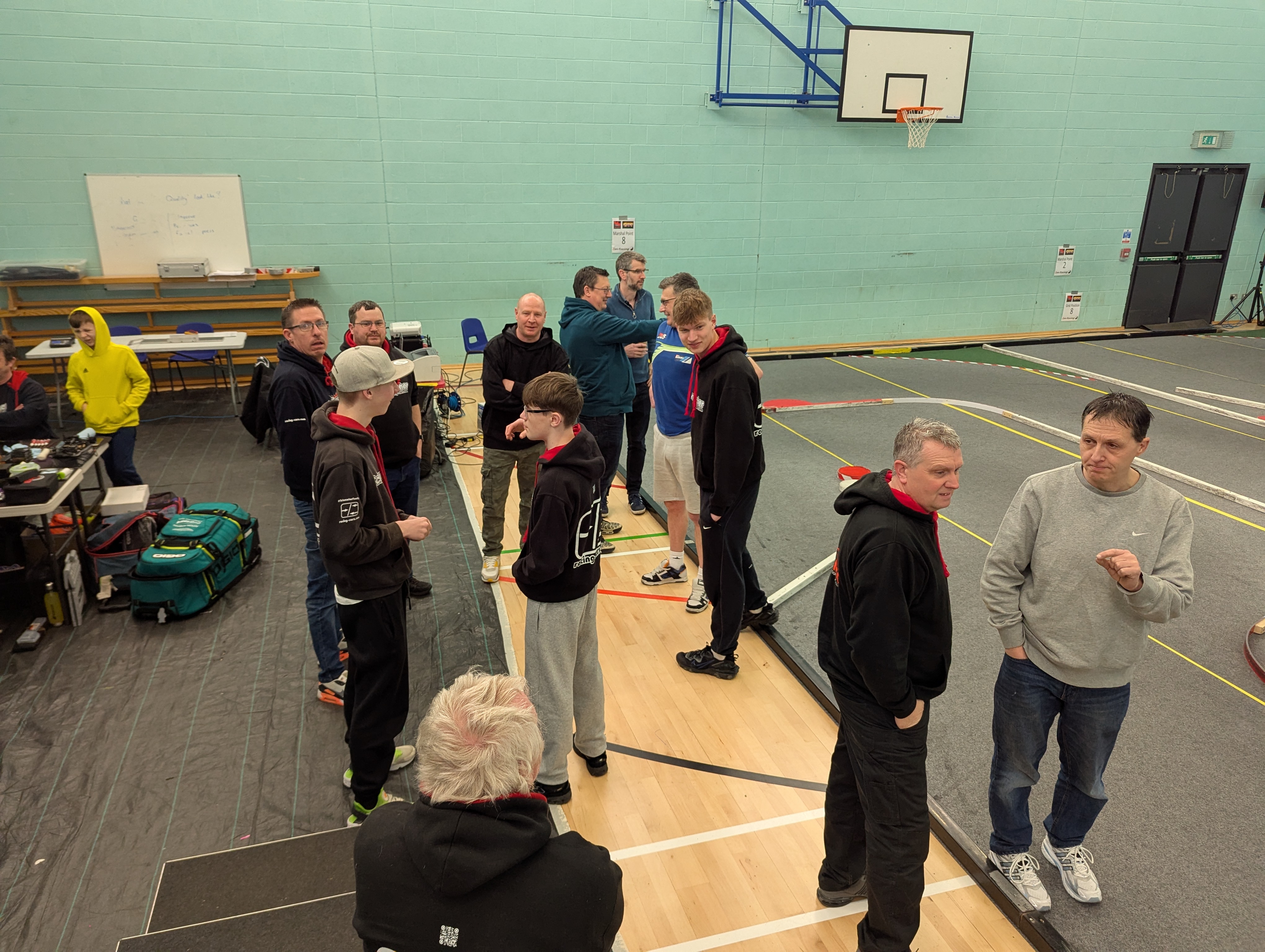 On to the racing Michael laws set the early pace by toping the time sheets through practice, Q1, Q2 & Q3 but we all know that in indoor carpet racing Q4 is oh so important and it proved to be just that today. Ewan Thompson waited until around 5 minutes into the final round of qualifying to pinch the top spot and held onto it for the remaining time.